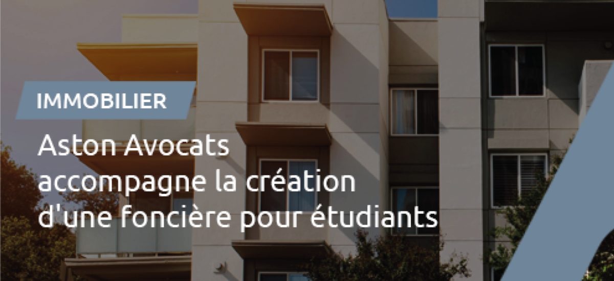 Le département Immobilier d’Aston Avocats, dirigé par Romain Rattaz, est heureux d’avoir conseillé et accompagné un investisseur institutionnel (représentant un volume d’affaires Groupe de plus de 387 M€ en 2021), un family office et des investisseurs privés dans la création d’une toute nouvelle entité foncière. Cette foncière se spécialise dans le logement des étudiants, et à